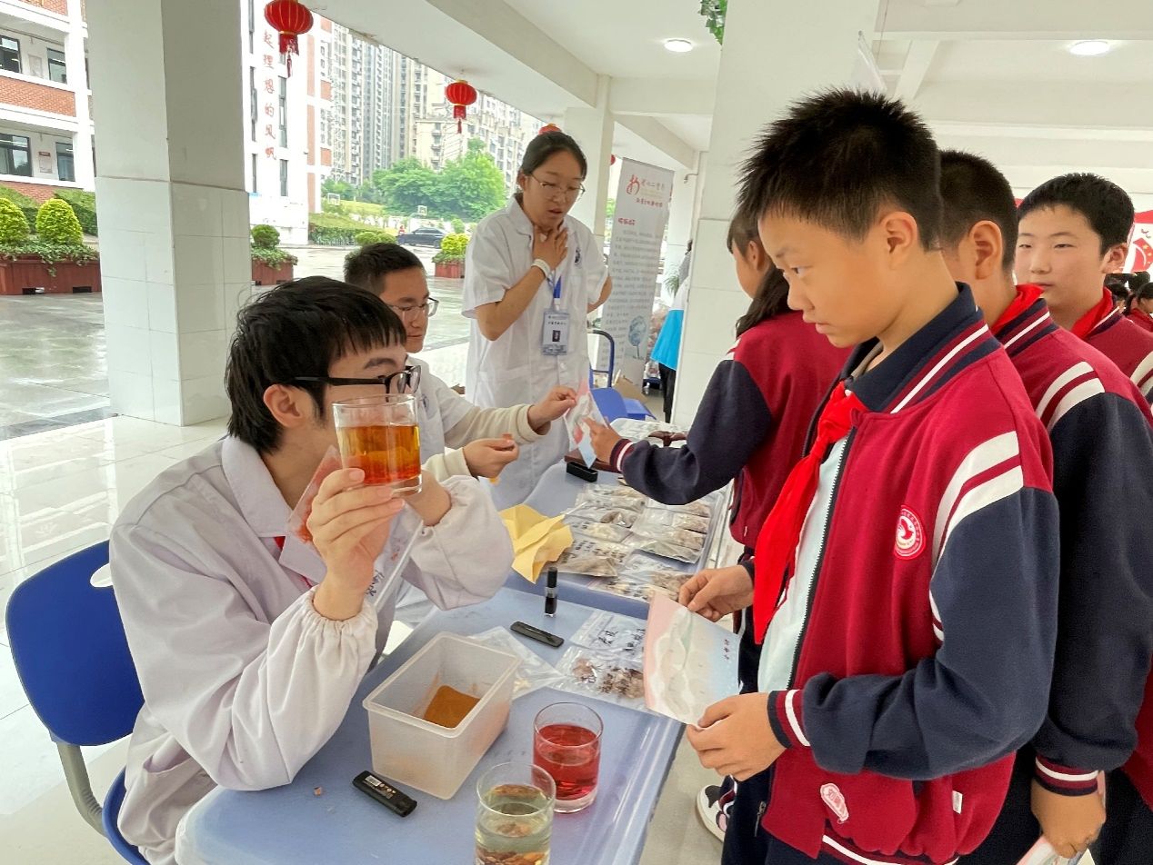 安徽中医药大学的志愿者们为小员工们带来了中医药传统文化进校园主题展示,包括“五禽戏和八段锦”“中药本草香囊制作”和“中药标本识别”等内容,通过志愿者们的详细讲解和亲身体验,少先队员们浸润、学习、体验、感悟中华优秀传统文化,不仅提升了青少年的文化自信和科学素养,同时也发挥了党、团、少先队的组织育人功能,聚焦思想引领,培育时代新人。