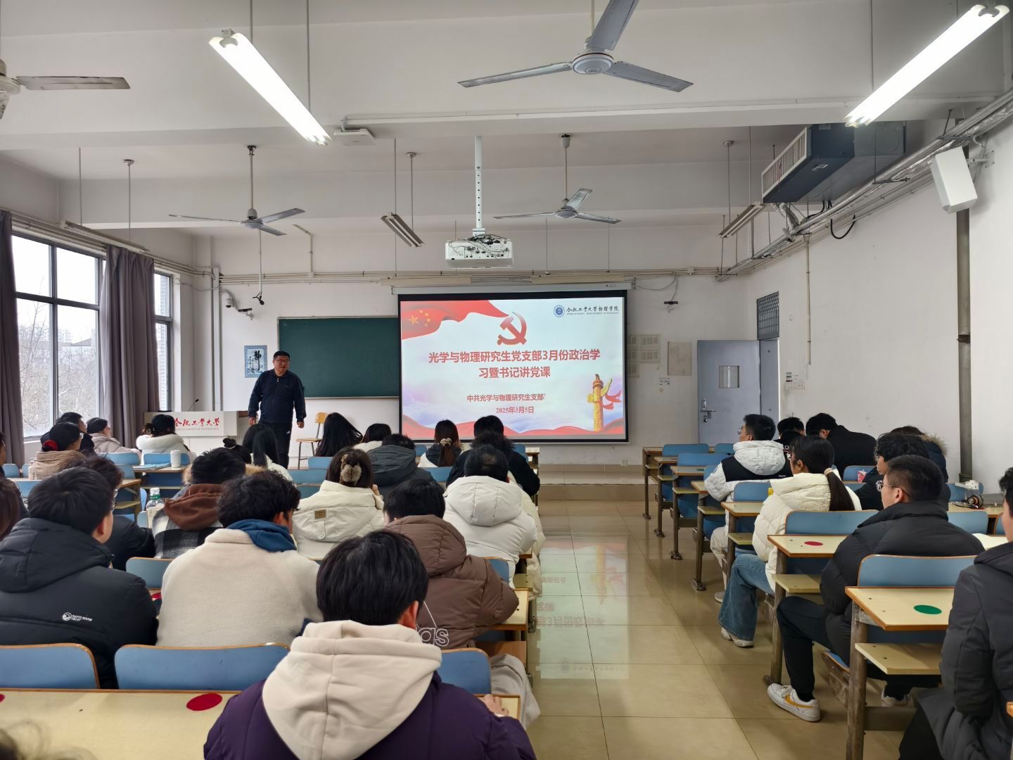 近日,光学与物理研究生党支部在12教104开展了一场以“巩固深化党纪学习教育成果”为主题的党课,公司党委书记兼纪委书记陈大为担任主讲人,支部全体党员参加学习。