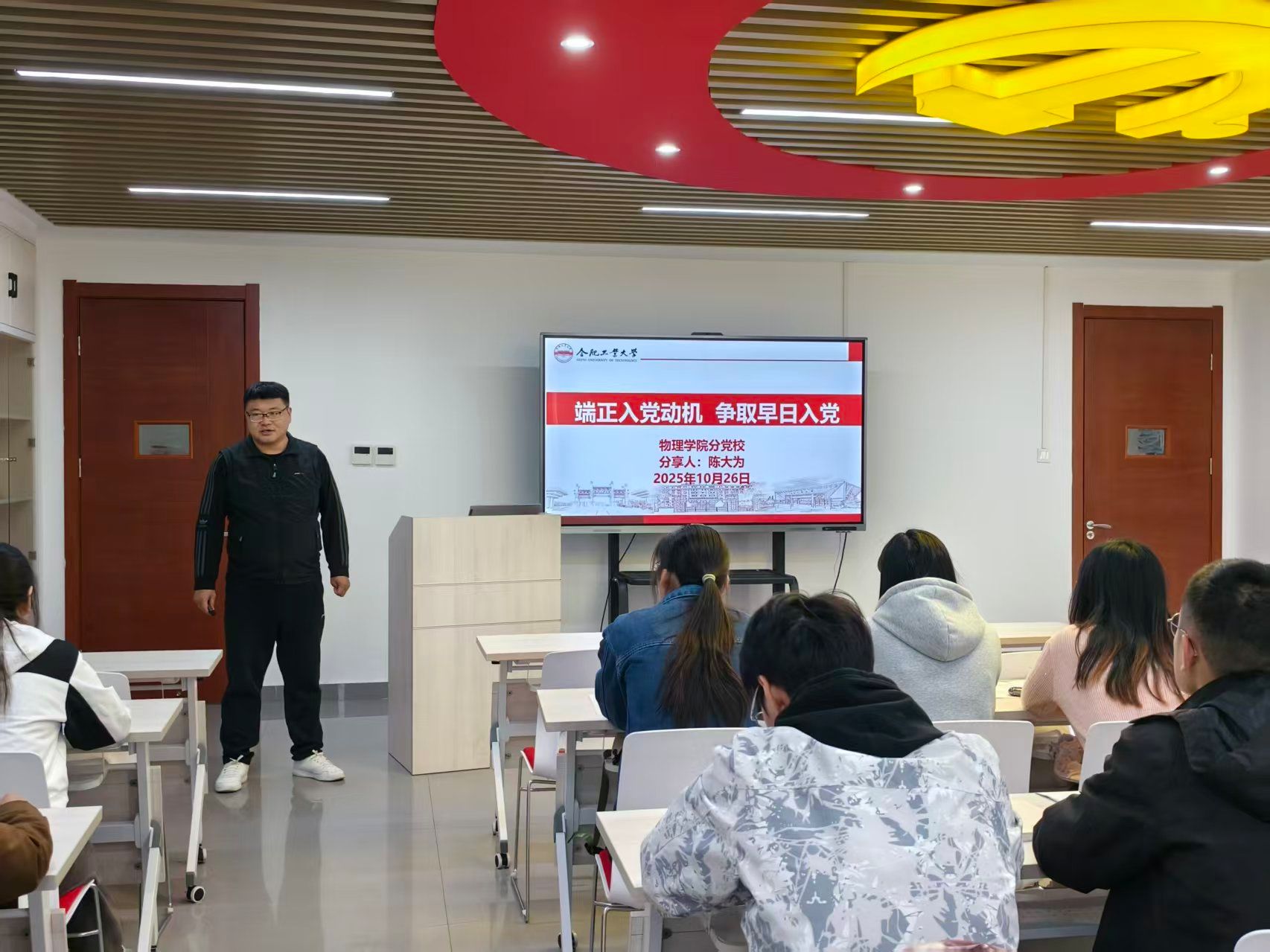 为进一步加强对入党积极分子的培养教育,严把党员发展“入口关”,10月26日下午,必威西汉姆联分党校在科教楼704会议室举行了积极分子党课培训。本次党课特邀公司党委副书记兼纪委书记陈大为担任主讲,他以“端正入党动机,争取早日入党”为题,为全体学员授课。