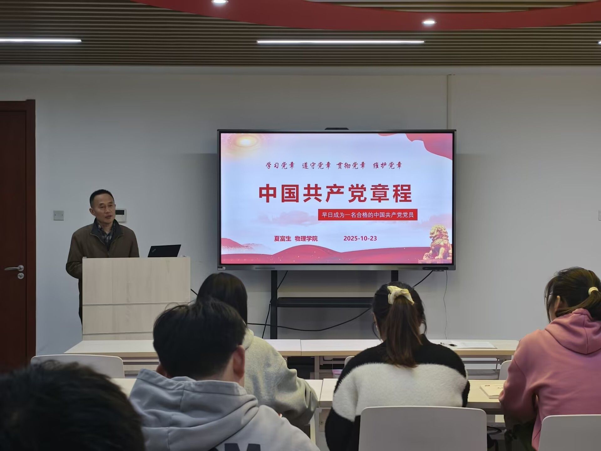 在讲授过程中,夏富生老师结合党的奋斗历程和伟大成就,详细解读了党的性质、宗旨、指导思想、奋斗目标以及党员的权利与义务等基本内容。他着重强调,深刻理解和自觉践行党的宗旨是争取入党的核心要求,每一位积极分子都应当从思想上、政治上、行动上全面向党员标准看齐。夏老师还就如何在学习、工作和社会生活中发挥先锋模范作用,如何自觉接受党组织的培养、教育和考察,如何以实际行动争取早日加入党组织等方面,向同学们提出了明确要求和殷切期望。学员们专心聆听,认真记录,纷纷表示通过此次学习,对党章有了更为系统和深刻的认识,对党的认识得到了进一步深化,入党的决心更加坚定,前进的方向更加明确。