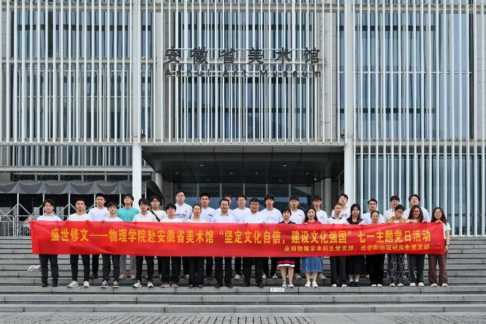 为扎实推进主题教育,学习习近平总书记在文化传承发展座谈会上的重要讲话精神,6月25日下午,公司组织赴安徽省美术馆开展“坚定文化自信,建设文化强国”七一主题党日活动。公司党委委员、应用物理学本科生党支部、光学和物理研究生党支部师生党员40余人参与活动。