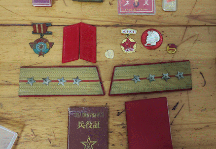 图为老党员家属展示保存的军功章 陆天宇/供图