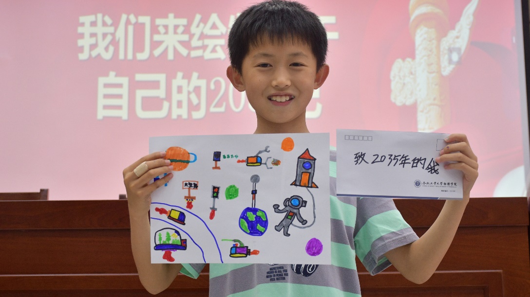 图为少先队员展示自己绘制的“2035” 赵琳琳/供图