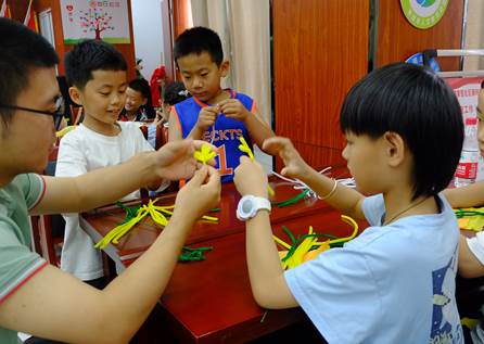 图为实践营成员带领少先队员们完成纸花作品 张兴龙/供图