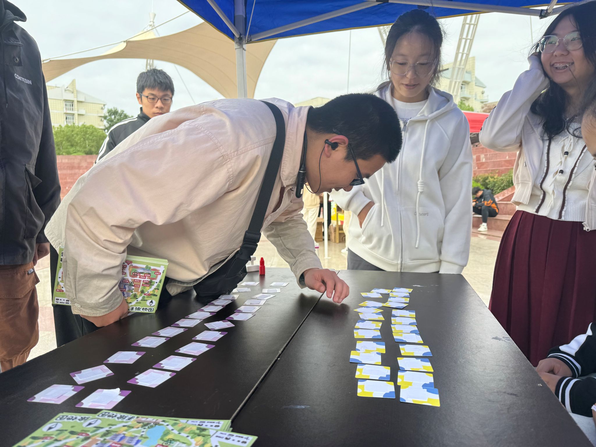 打卡点以新中国发展过程中重大历史事件命名,同学们先后走过1949年新中国成立站、1950-1953抗美援朝站、1954年第一届全国人民代表大会站等十二个站点,每个站点有不同的趣味项目,如中国传统项目投壶、考验反应力与记忆力的羊了个羊,还有考验平衡力的搬石过河、团结合作的传声筒、蒙眼绕障碍等活动,这些活动不仅考验着同学们的各项能力,也让同学们在游戏过程中深入了解新中国发展历程与艰辛不易。