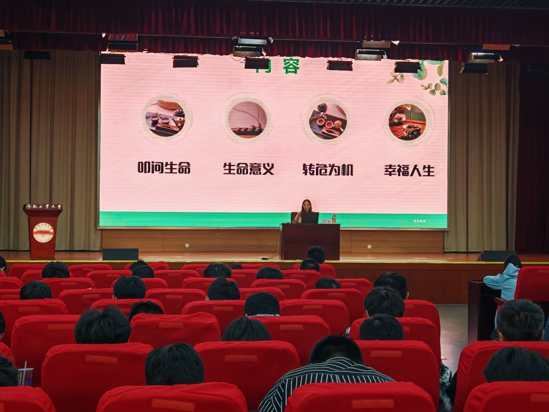 胡霞从新生对自己生命状态的看法和期待导入,从“叩问生命”“生命意义”“转为危机”“幸福人生”四个方面助力新生积极思考。其中“叩问生命”主要围绕生命的维度,生命的境界,生命的状态等展开讲解;“生命意义”重点讲解不同人对生命的理解和同一个人对生命的不同理解以及感受生命的意义的方法;“转为危机”主要帮助员工明白危机种类,寻找解决办法;“幸福人生”,从员工的整个生命角度,讲述生命这整个历程追求的幸福。