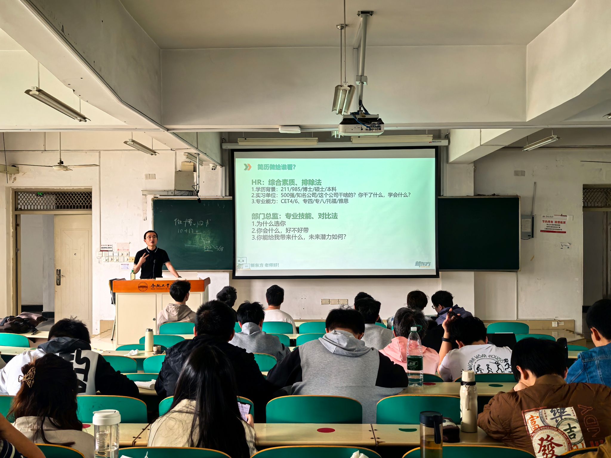 为提升必威西汉姆联本科生求职竞争力,公司于2025年4月12日在翠五教学楼208教室举办“格物穷理·知行合一”简历制作培训会,活动特邀新东方教育科技集团合肥公司人力资源部刘龙担任主讲,2022级全体本科生参加。