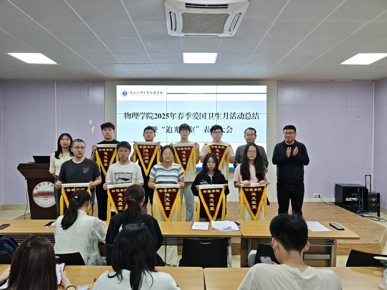 大会全面总结了春季爱国卫生月成果,并对表现突出的集体进行表彰。公司辅导员陶候宣读了《关于表彰2025年第一批“追光寝室”的决定》,共12间寝室凭借整洁环境、和谐氛围及积极学风获评“追光寝室”。物理公司党委副书记兼纪委书记陈大为为获奖寝室代表颁发流动红旗,勉励获奖寝室发挥示范作用,再接再厉,激励存在差距的寝室迎头赶上。