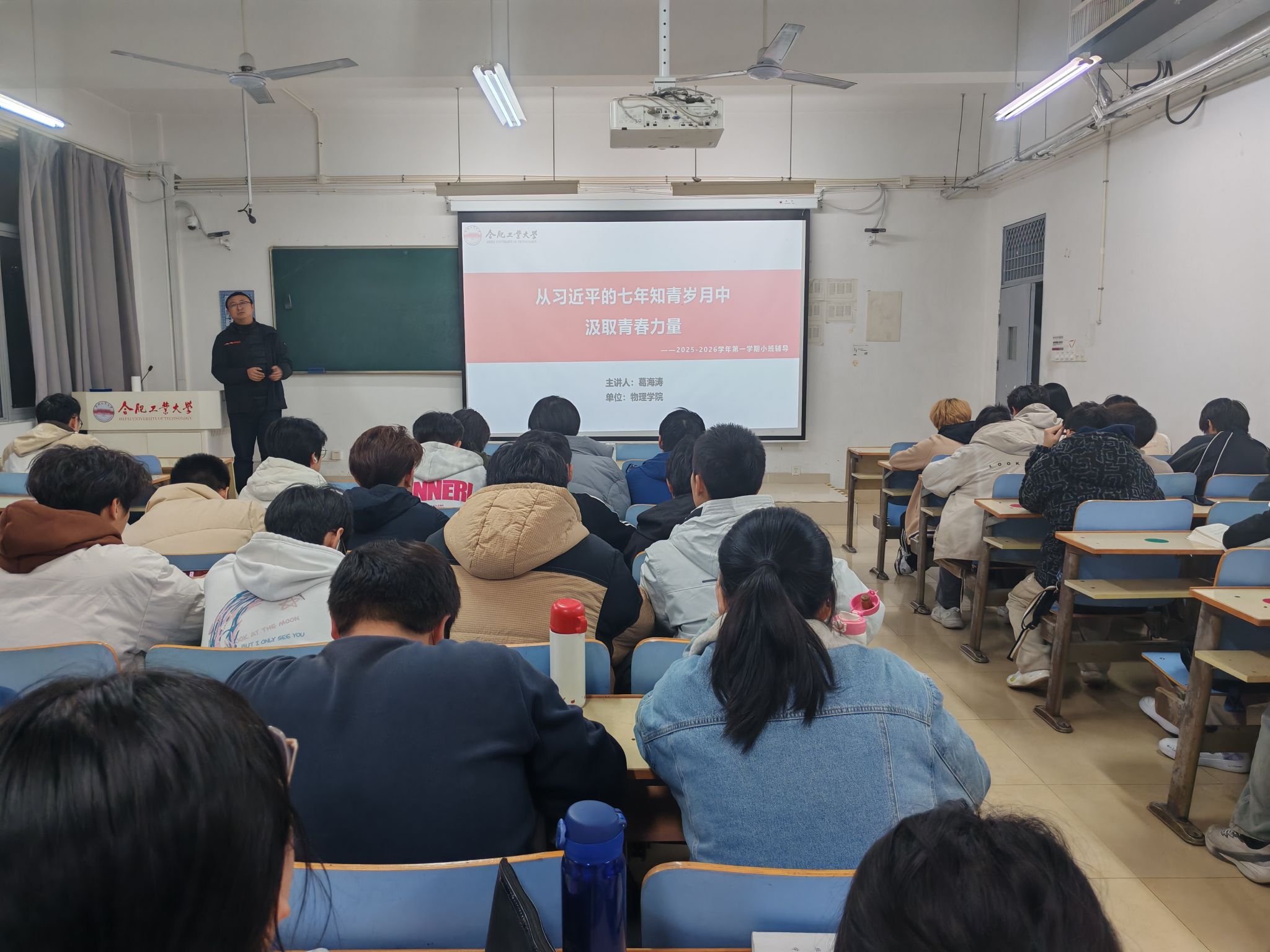 在辅导过程中,辅导员围绕习近平总书记的七年知青岁月进行了详尽讲解。他借助鲜活的历史细节,生动地再现了青年习近平在梁家河插队时,克服跳蚤关、饮食关、劳动关、思想关等重重困难,历经艰辛历练的过程,以及他带领村民修路、办沼气、建代销社,扎根基层为百姓办实事的感人故事,深刻诠释了青年习近平坚定不移的理想信念、吃苦耐劳的优良品质以及爱国为民的家国情怀。同时,他结合青年的成长使命,引导同学们从领袖的青春岁月中汲取奋进的力量,树立正确的理想追求。