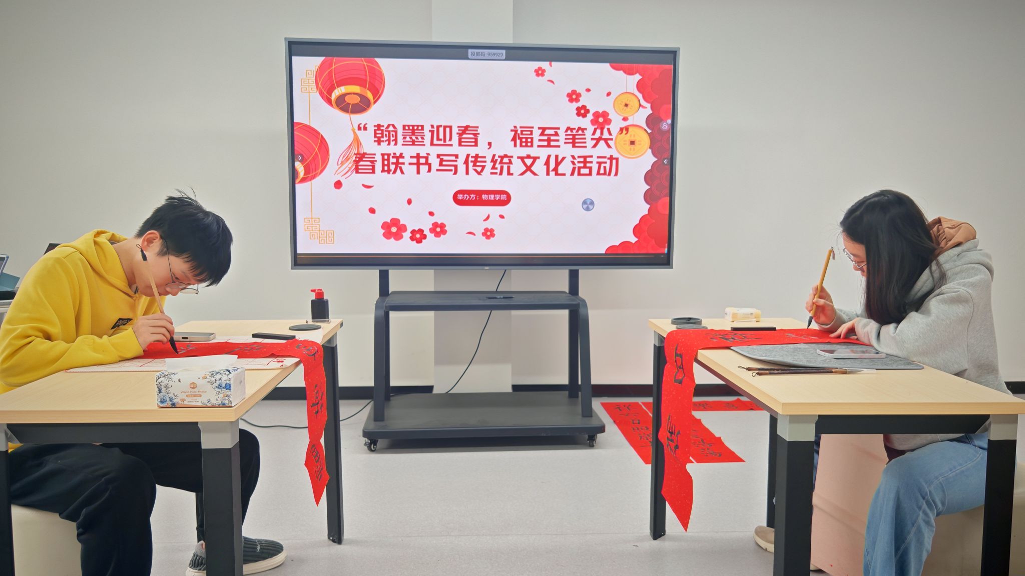 为弘扬中华优秀传统文化,营造喜庆祥和的新春佳节氛围,丰富公司员工的文化生活,1月18日下午,必威西汉姆联“翰墨迎春,福至笔尖”对联书写活动在4号宿舍楼员工社区沙龙空间圆满举办。活动吸引了众多同学踊跃参与,大家执笔挥毫,在墨香中共迎龙年新春。