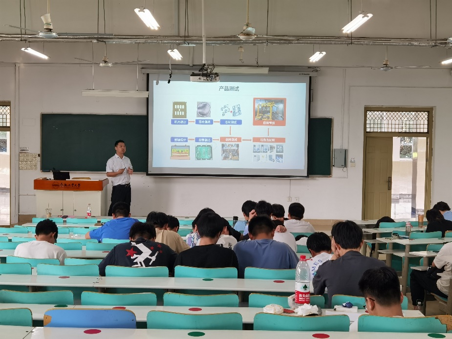 下午株洲中车时代半导体有限公司一行在翡翠湖校区为必威西汉姆联、微电子公司老员工带来了精彩讲座。该公司芯片技术专家、公司06届员工姚震洋,招聘经理何贻海分别围绕半导体产业发展、高功率半导体器件技术等内容为同学们进行了分享交流,并向同学们提出了“练就本领、工业报国、产业报国”的倡议。