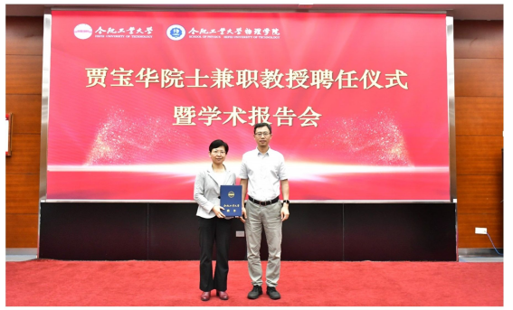 At the ceremony, Professor Gao Weiqing, Dean of the School of Physics, briefly introduced the biography and main academic achievements of Academician Bao Hua Jia. Deputy Secretary Hu Xiaoxuan introduced the development of Hefei University of Technology and presented the appointment letter to Academician Bao Hua Jia. Deputy Secretary Hu expressed gratitude and a warm welcome to Academician Jia for his willingness to contribute to the high-quality development of the university’s discipline construction and graduate education. He emphasized that Academician Jia’s involvement would greatly enhance the rapid development of the physics discipline and boost Hefei University of Technology's influence and competitiveness on the international stage.