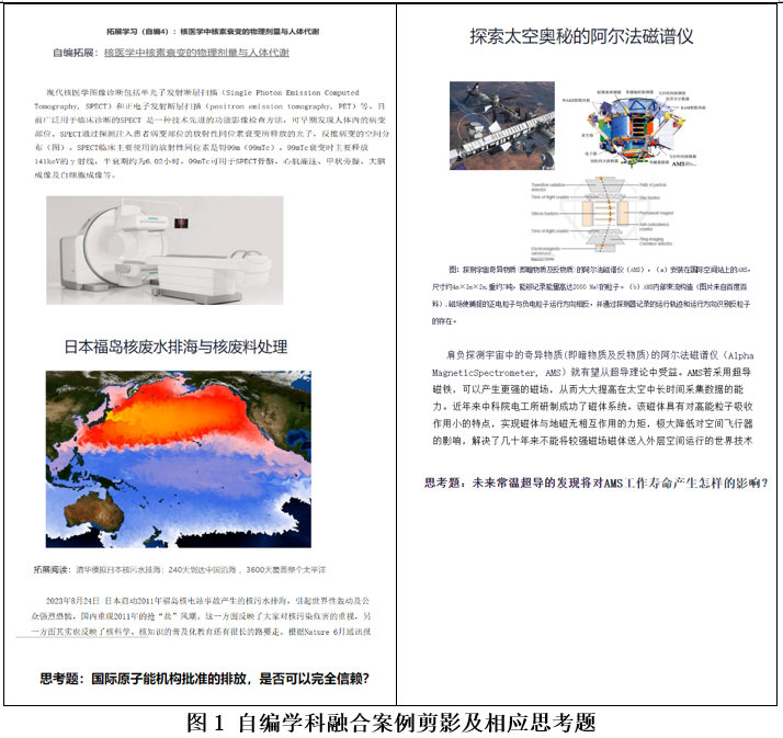 鉴于学时不足的限制,使得《大学物理》课程的课堂上基本都在追赶、讲授必考内容中度过。许多近现代物理学发展分支,特别是与高新科技应用相关联部分,很难在课堂的有限时间内展开。这也更加“彰显”《大学物理》的古老经典理论与当代高新科技应用严重脱节。为解决此困境,林老师主导并联合物理系几位老师,自创了《大学物理》的延续 & 升级版课程——自然科学类公选课《近代物理专题》的课程体系。以图片、动画、慕课等新媒体形式向员工介绍近现代物理理论及其与高新科技应用之间千丝万缕的联系。并通过自编学科融合案例(图1),上传校智慧教学平台向员工展示,培养员工的创新意识与创新思维,增强《大学物理》类课程的“新工科”色彩。