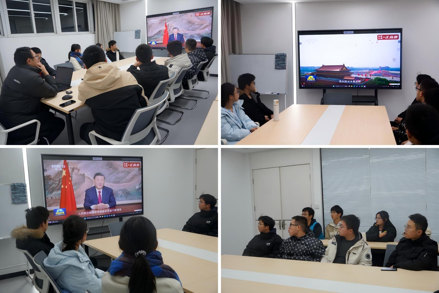 贺词回顾了极不寻常的五年历程,细数经济总量突破140万亿元、科技创新多点突破等辉煌成就,字里行间饱含人民至上的深厚情怀,更吹响了奋进新征程的铿锵号角。观看过程中,师生们专注聆听、认真记录,被贺词中的温暖与力量深深触动。